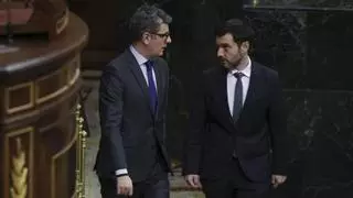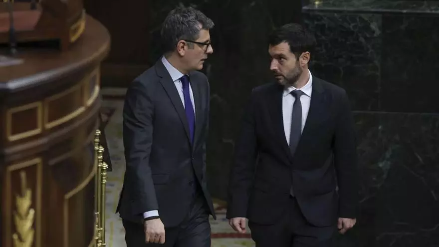 Els ministres de Presidència, Félix Bolaños (esquerra), i de Drets Socials, Pablo Bustinduy, ahir. | KIKO HUESCA / EFE