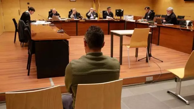D'esquenes, l'acusat d'agredir sexualment una treballadora a Puigcerdà. Foto del judici a l'Audiència de Girona / Marina López