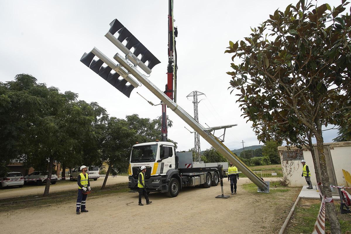 Les imatges dels tècnics d'Endesa col·locant la sirena a Bescanó